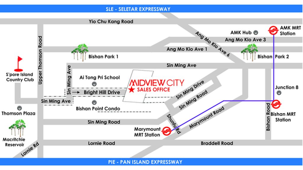 Midview City is conveniently located near Marymount MRT Station (CC16) on the Circle Line and Bright Hill MRT Station (TE7) on the Thomson-East Coast Line, facilitating easy commutes.
