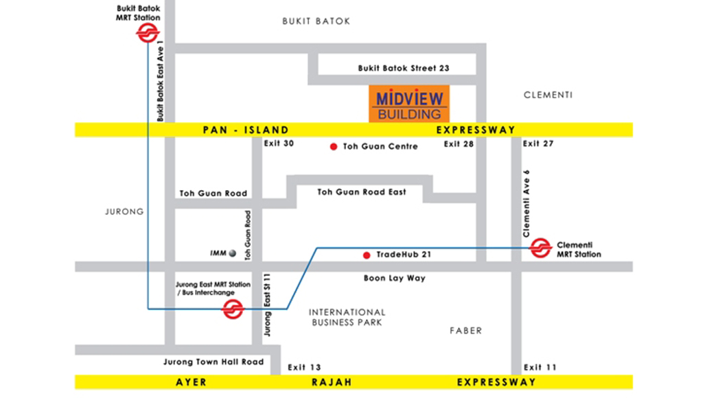 “Midview Building is a 60-year leasehold B1 light industrial development located at 50 Bukit Batok Street 23 in District 23, Singapore. Completed in 1997, the building sits on a land area of approximately 12,495 square meters, with a gross floor area of around 31,238 square meters. It is well-suited for light industrial activities, warehousing, and businesses that require ancillary office space.