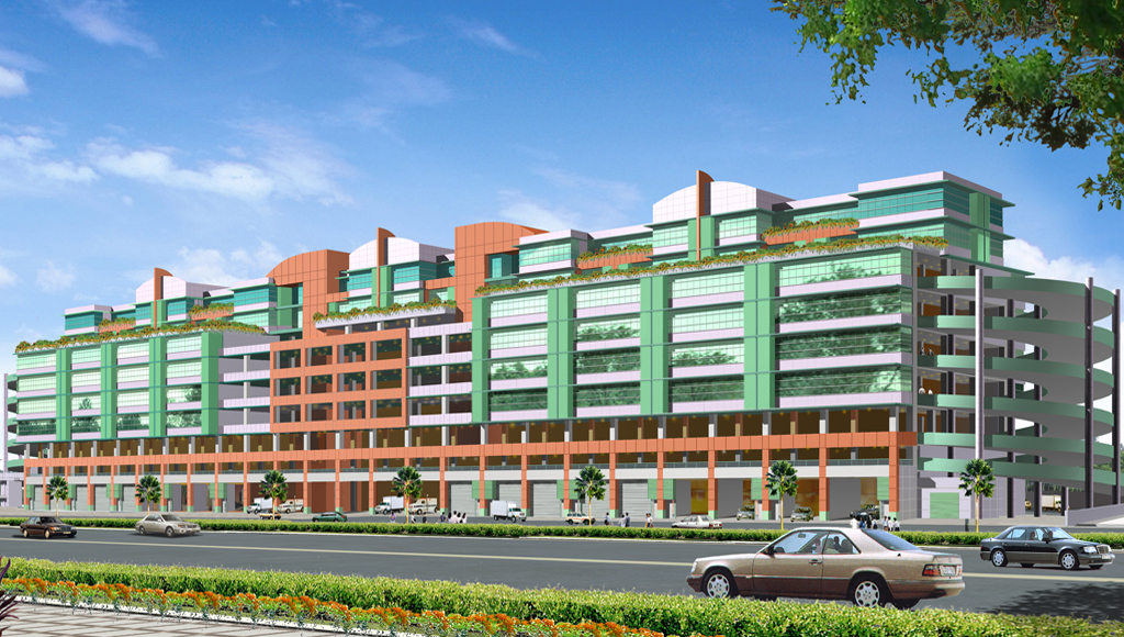 A 9-storey building comprising 7 storeys of showrooms, warehouses and ramp up factories and 2 storeys of flatted factories.